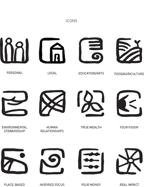 RSF is a non-profit investment and lending organization dedicated to using the tools of finance to bring about positive change. The goal of this project was to develop various brand collateral centered around 12 marks that visually define the 12 values on which the RSF mission is based. The illustration style was inspired by Japanese calligraphy. This project was completed while working for Free Range.